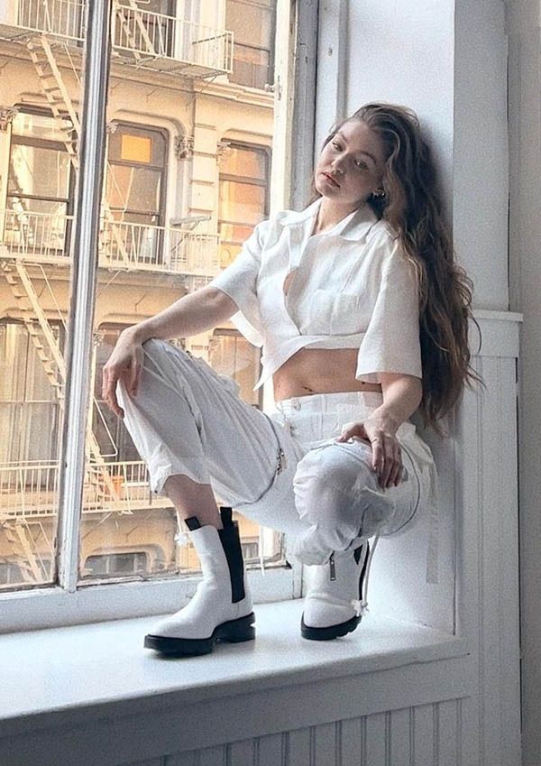 Todos los colores pueden usarse en todas las estaciones. No hay ninguna ley que lo impida. Gigi Hadid lo sabe y subió una foto a sus redes luciendo unas botas blancas. Muchas it-girls ya las habían sacado a la calle en materiales engomados o en forma de bota de lluvia, pero nunca combinadas con negro.