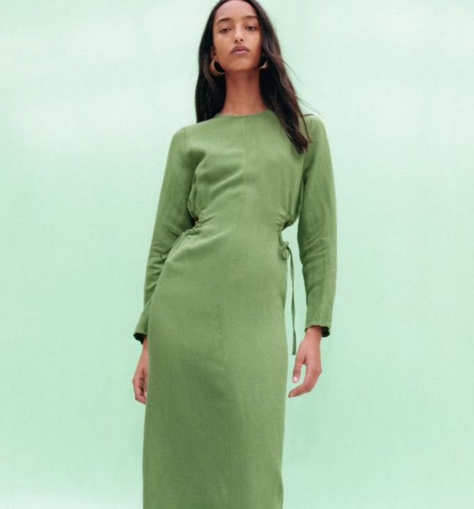 Zara siempre está a la vanguardia de la moda. Esta vez lo hace con el vestido midi verde cut out de manga larga y lino.