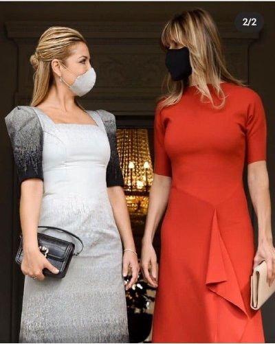Para su visita en Francia donde se encontraron con Emmanuel Macron, Fabiola se decantó por un vestido de macramé de seda hecho a mano, en color rosa, de mangas largas y falda evasé. Lo acompañó con tacones de tira, coleta alta, clutch y barbijo del mismo color. Un diseño espectacular, femenino y delicado.