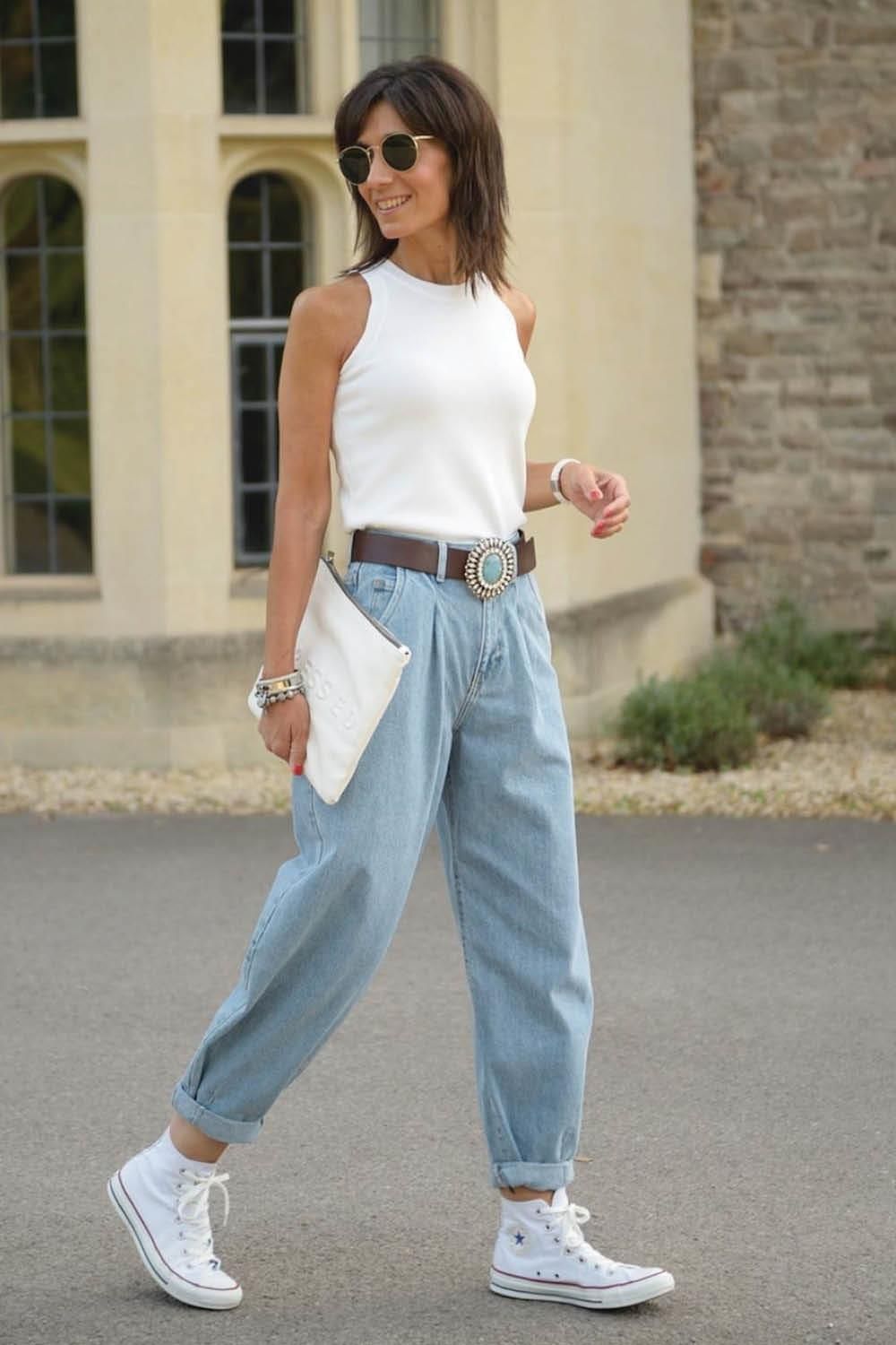 Tiro alto. El tiro alto es el más favorecedor hacia los 40 años. Marca la cintura, disimula el abdomen y da la impresión de piernas y torso más largo. Al armonizar tanto la figura, es el más elegido de esta temporada y de la anterior: los moms jeans, los jeans recto o los wide leg son todos modelos que presentan tiro alto.