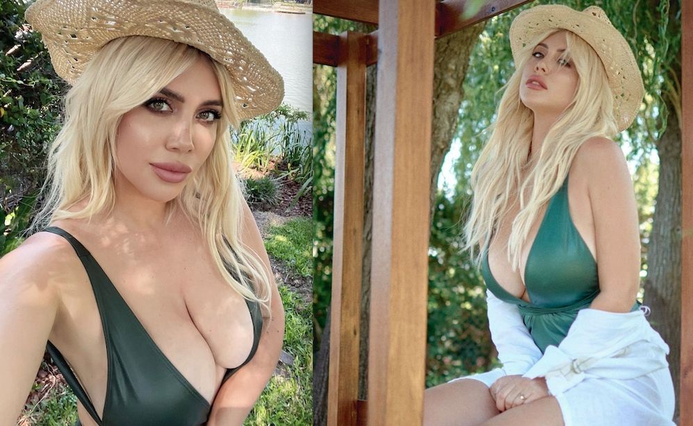 Por su parte, Wanda Nara utilizó un sombrero hecho a mano con fibras naturales y de ala ancha, súper fresco, con detalles calados y en color natural en sintonía con un traje de baño color verde de su propia colección.
