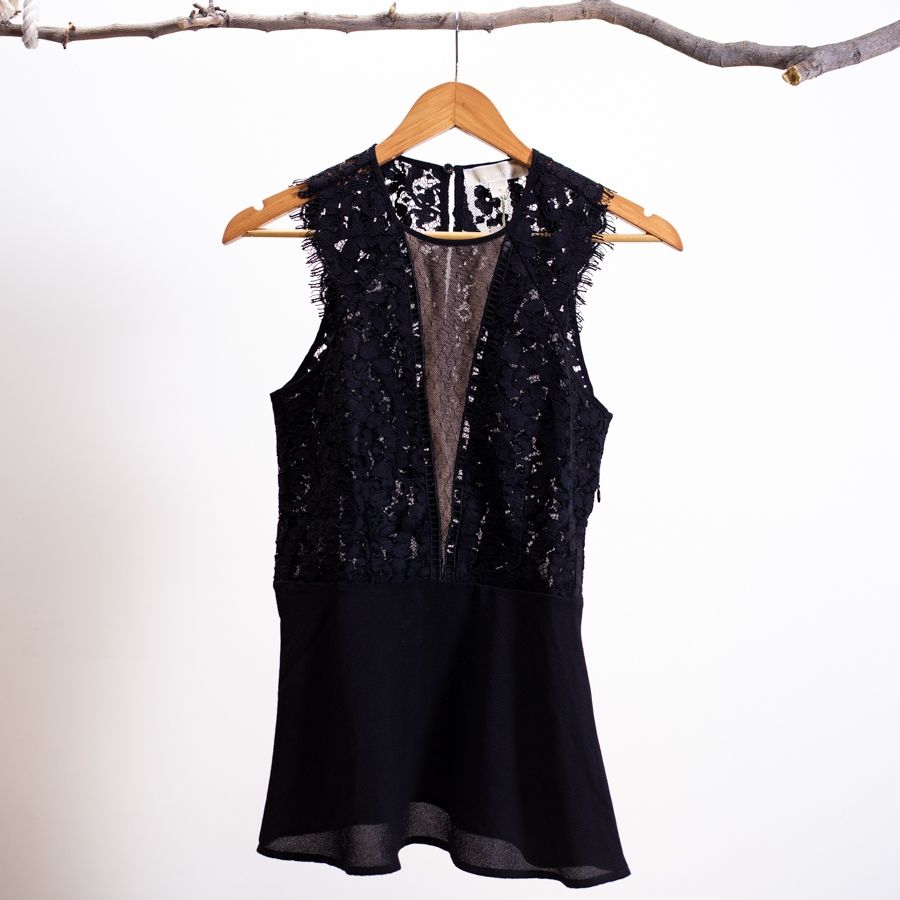 Ahora que estamos en verano y tenemos varios eventos o fechas importantes como bodas, lo mejor es que elijamos prendas simples y que podamos usar varias veces cambiando accesorios o complementos. Por eso elegimos una falda negra con tul de encaje bordado y plisada junto a un top negro de corte peplum, escote profundo y cuerpo de encaje bordado. Así obtendrás dos piezas perfectas para cualquier ocasión.