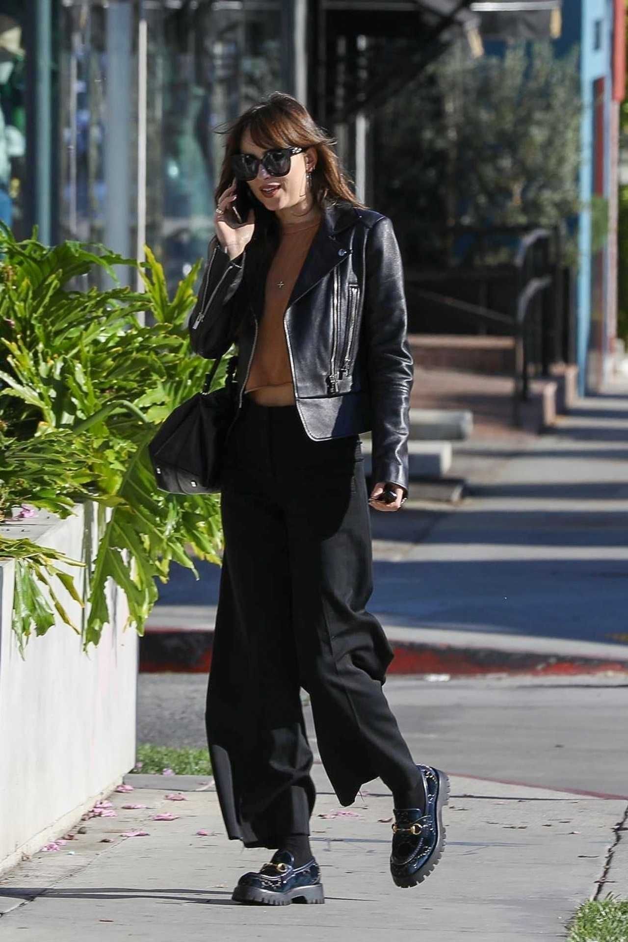 ¿Prefieres mocasines estampados? ¡Inspírate en el atuendo de Dakota Johnson! Foto: Hot Hollywood Star.