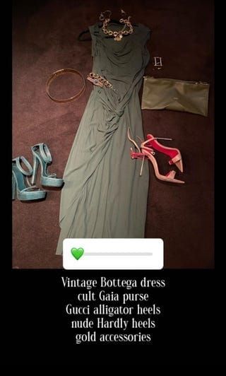 Los accesorios que rompieron con la armonía en verde del ouftit fueron una cartera dorada de la firma Cult Gaia, la misma tonalidad del cinturón joya, las pulseras y los aros de eslabones dorados. “Acerca de anoche”, escribió sugestivamente Jennifer Lopez debajo de la foto que rompió Instagram y que ratifica que en 2022 seguiremos viendo los mejores looks de Jennifer Lopez, una mujer enamorada, empoderada, con personalidad y estilo.
