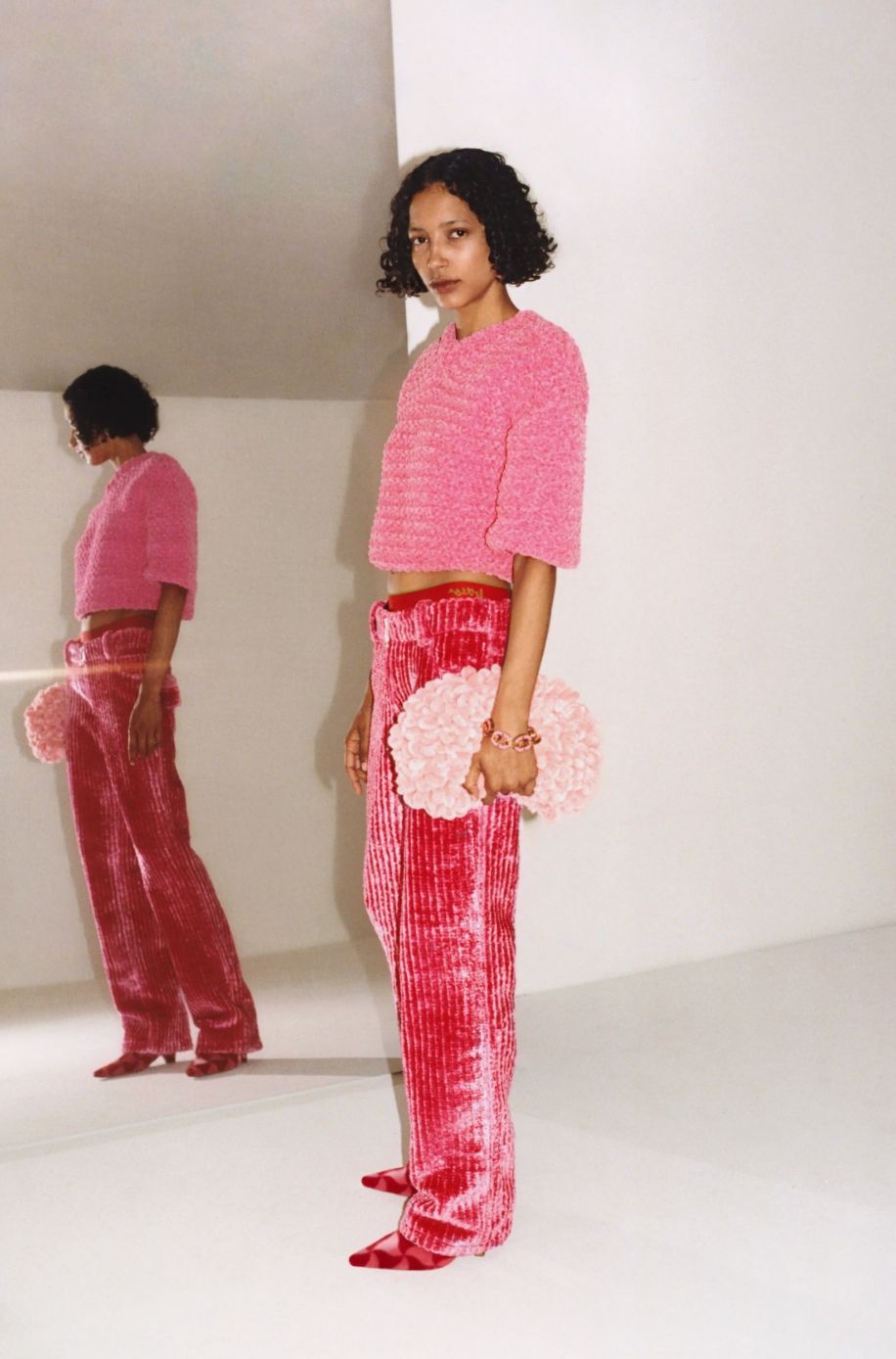 Con el conjunto rosa fucsia de la colección de la firma italiana Pierpaolo Piccioli anticipó que en el otoño invierno 2022 no regresaremos a tonos neutros ni amarronados ¡Se acerca una temporada fría llena de color!