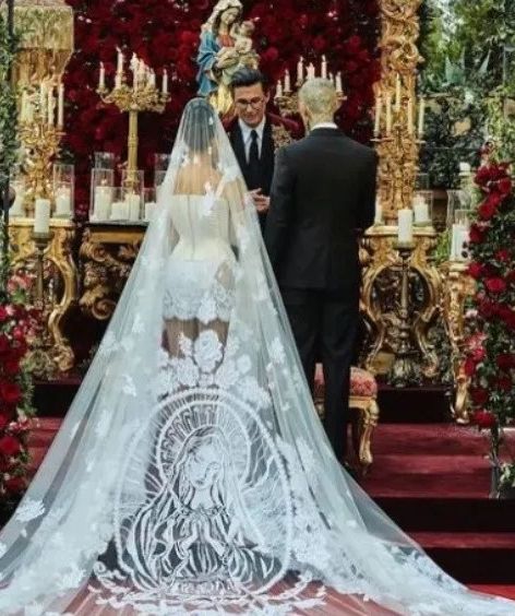 Y es que, sin lugar a duda, el diseño único y exclusivo que la casa de moda italiana Dolce & Gabbana confeccionó para Kourtney, estaría en el foco de atención de todos los medios. Por ello, decidió resaltar algunos detalles que tuvieron que ver con su diseño y eso, fueron los materiales con que fue realizado y la imagen de la Madonna o la Virgen María que se podía apreciar en el enorme velo que complementó el lujoso vestido.