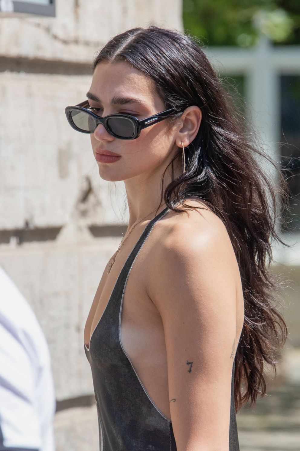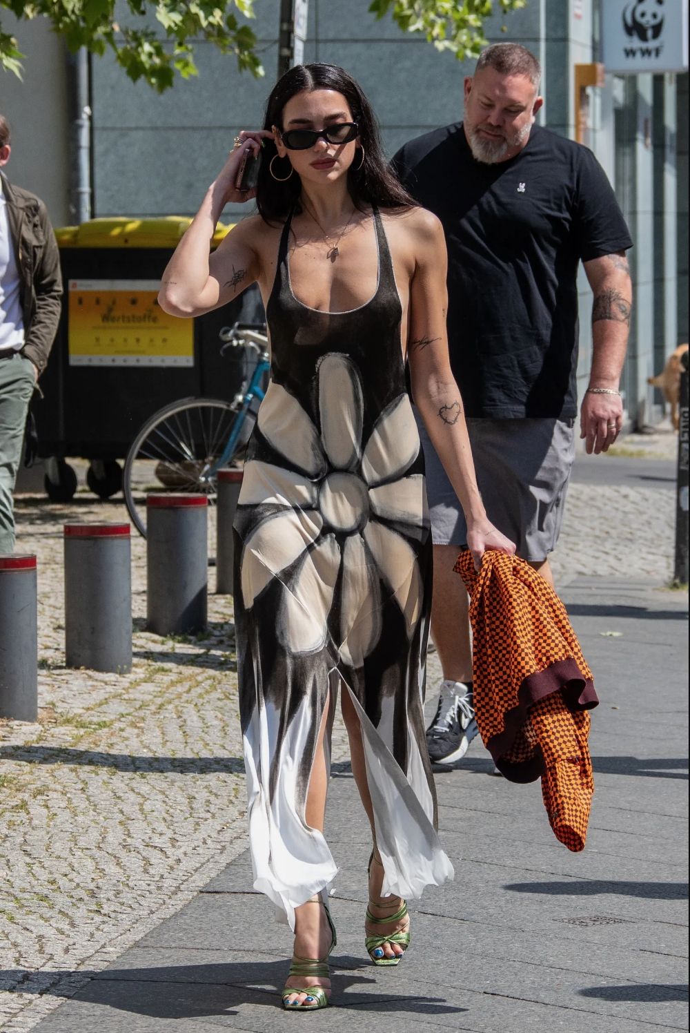 De inspiración hippie, pero de la mano de una marca de lujo, Dua Lipa lo combinó con unas sandalias de tiras en tono verde lima y las uñas de manos y pies pintadas color azul eléctrico, dispuesta a aprovechar el calor alemán y el aire de vanguardia que manda en su street style.
