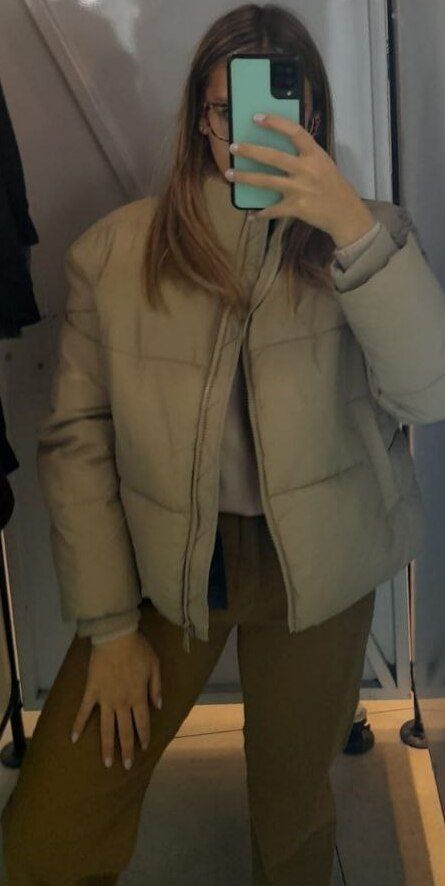 Seguimos con las tonalidades tierra en este look en donde nos decantamos por unos jeans wide leg en marrón, sweater beige y chaqueta puffer nude. A este estilismo le añades unas botas marrones o nude y tus piernas lucirán súper largas debido al bloque monocromático del look.
