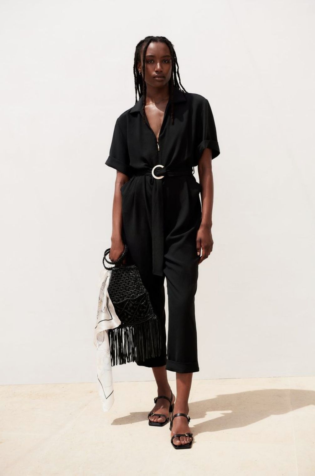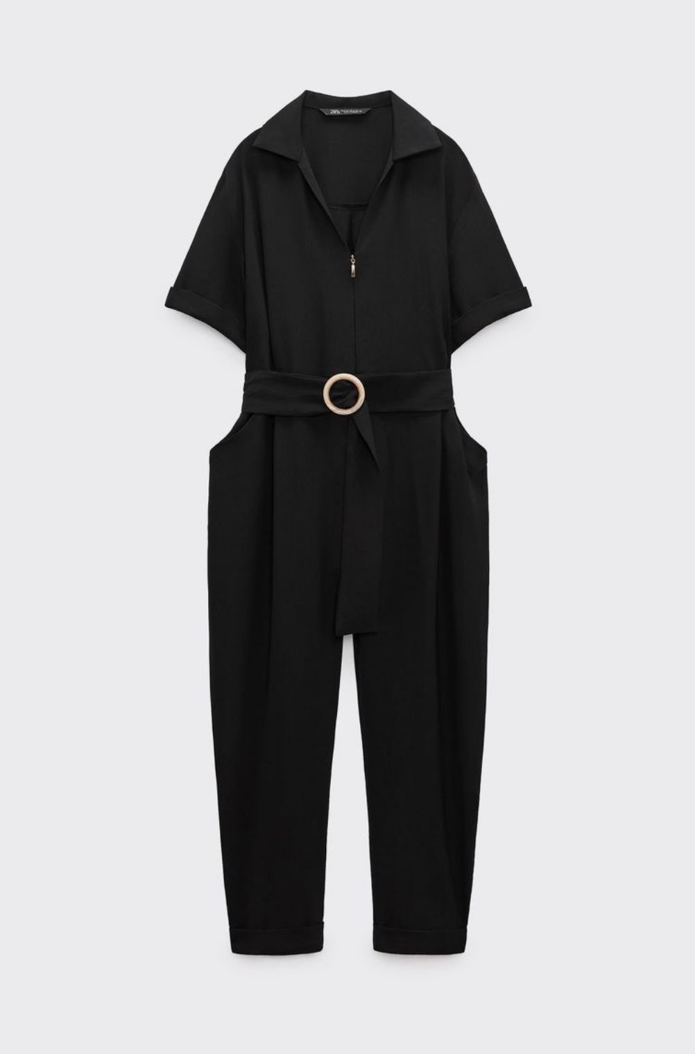 El diseño del mono negro de Zara hace que sea perfecto para todos los cuerpos: la parte inferior es recta en la pernera y holgada en las caderas, dejando un buen trozo de tela como caído al estilo babuchas.