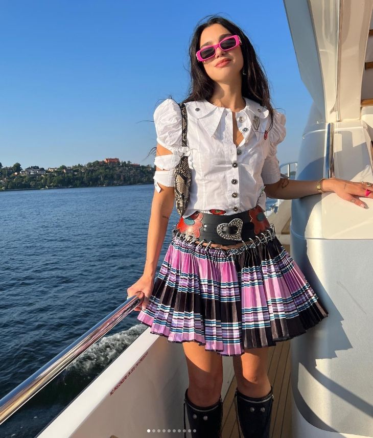 Dua Lipa y la minifalda tableada que marca tendencia