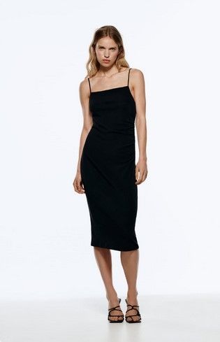 Escote cuadrado, estiloso y por un precio de 14,39 dólares este vestido negro puede ser tuyo. En versión más larga, con mangas y con tajo o escote halter con breteles, Zara ofrece un comodín perfecto para oficiar de aliado de todos tus looks.