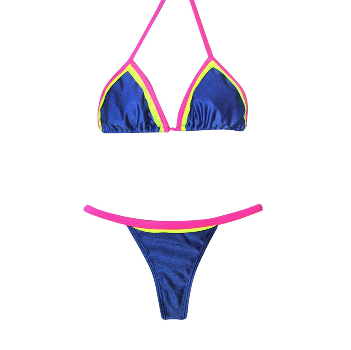 El bikini con reminiscencias a los años 80 y 90, en donde los tonos flúor fueron furor, tiene un corte clásico de triángulos y explota la tendencia en trajes de baño que trae nuevas proporciones: el corpiño es mucho más grande que la braguita.