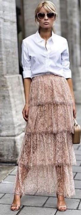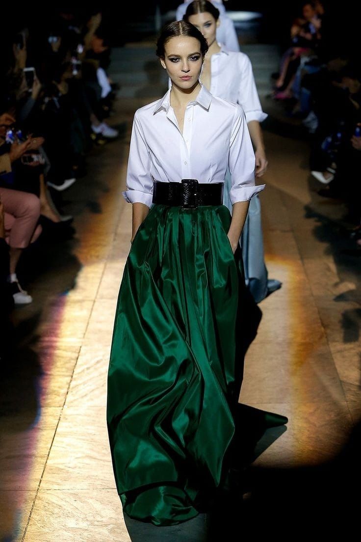 Ahora que empieza la temporada de eventos, una excelente opción es combinar una camisa blanca satinada con una maxi falda, emulando el estilo de Carolina Herrera.