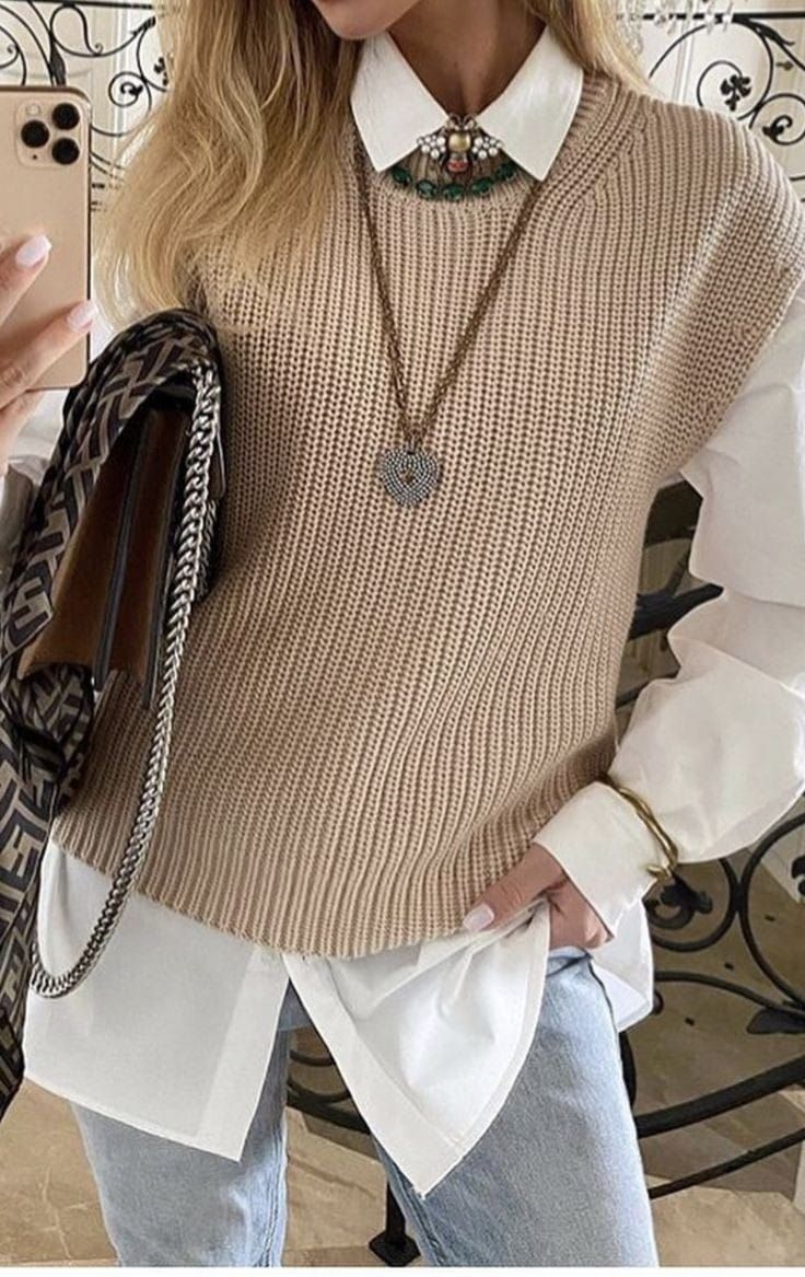 Una de las formas más versátiles de usar tu camisa blanca es como primera capa en un look con varios niveles de prendas. Recordá que estos outfits son ideales para los cambios de estación ya que nos permiten acompañar con nuestro looks las diferentes temperaturas del día.