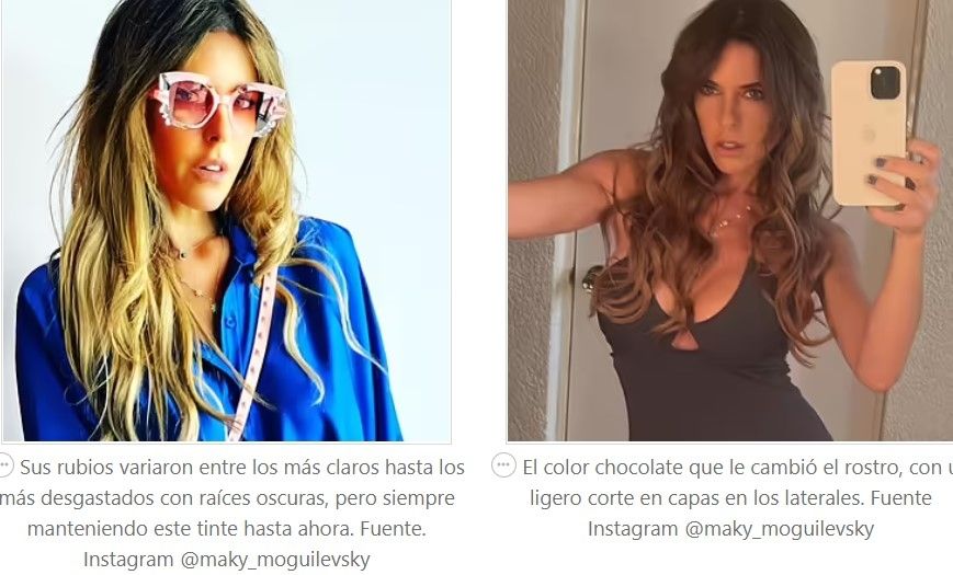 Attachment options… Sus rubios variaron entre los más claros hasta los más desgastados con raíces oscuras, pero siempre manteniendo este tinte hasta ahora. Fuente. Instagram @maky_moguilevsky