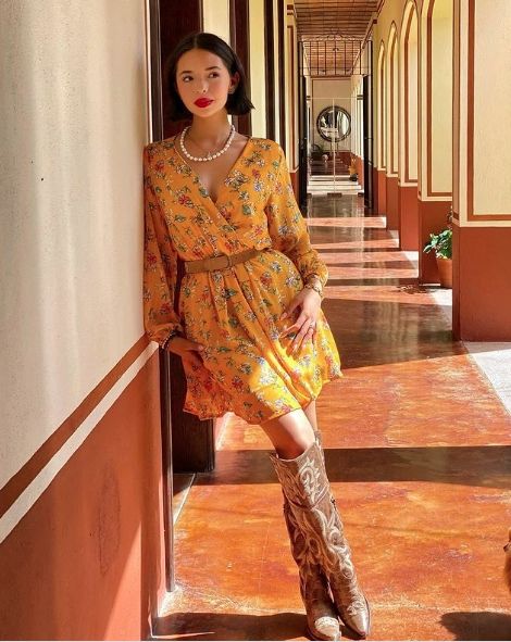Con una mirada por su feed podemos ver que le gustan las combinaciones arriesgadas, como botas bucaneras pero en modo texano y los vestidos llamativos, con muchas flores y volados.