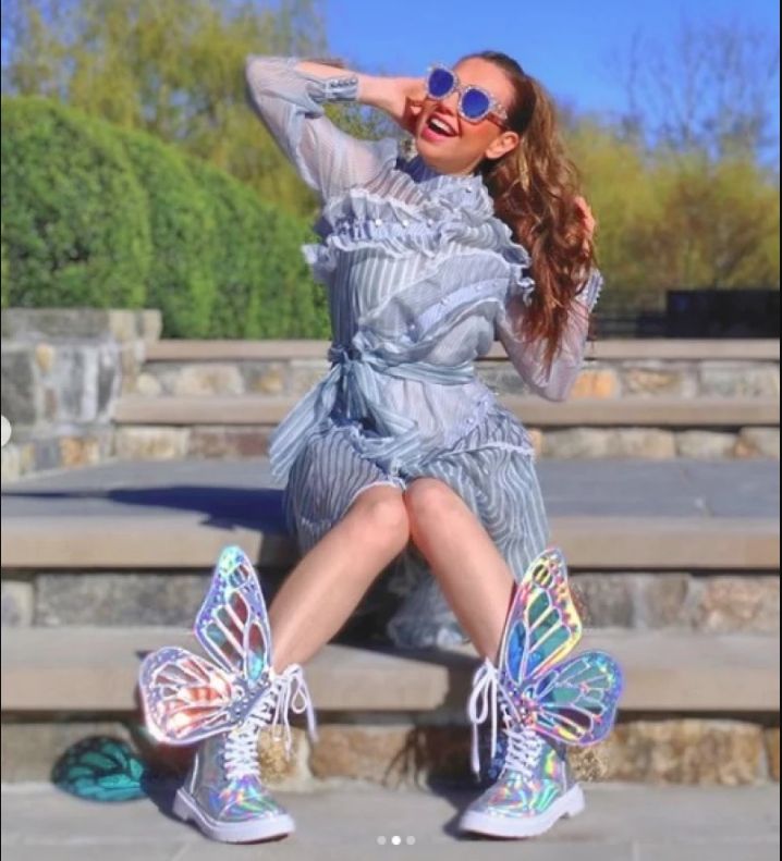 Grande fue la alegría compartida cuando Thalía mostró divertida en uno de sus posteos en Instagram un atuendo más que elocuente con su pasión por las mariposas: unas zapatillas acordonados intervenidas de tal forma que el tornasolado no fuera lo único llamativo del diseño: además de tornasoladas Thalía encargó que los tenis tuvieran alas de mariposas a ambos lados.