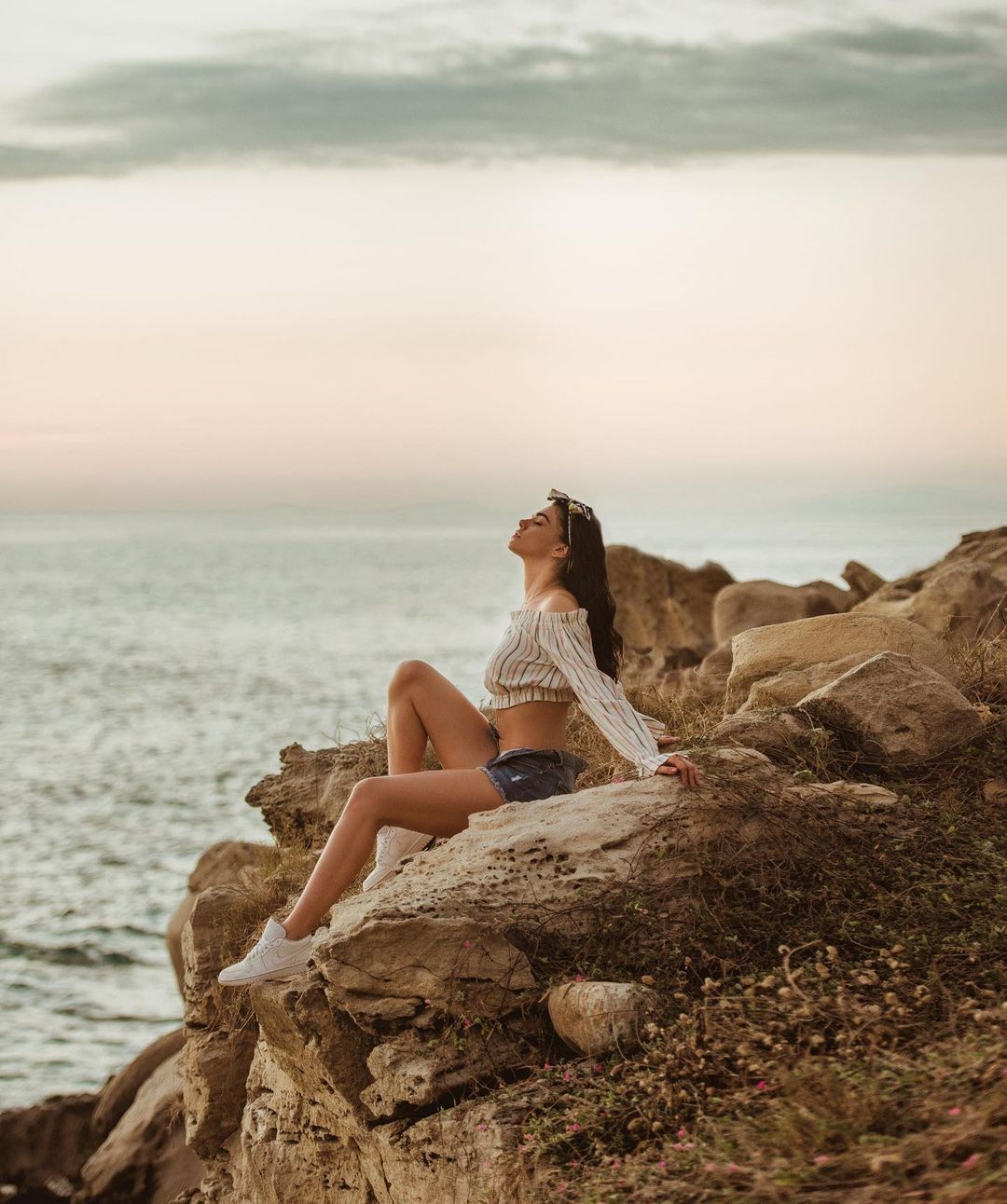Livia posa sensual en un peñasco mirando el mar. Fuente. Instagram @liviabritopes