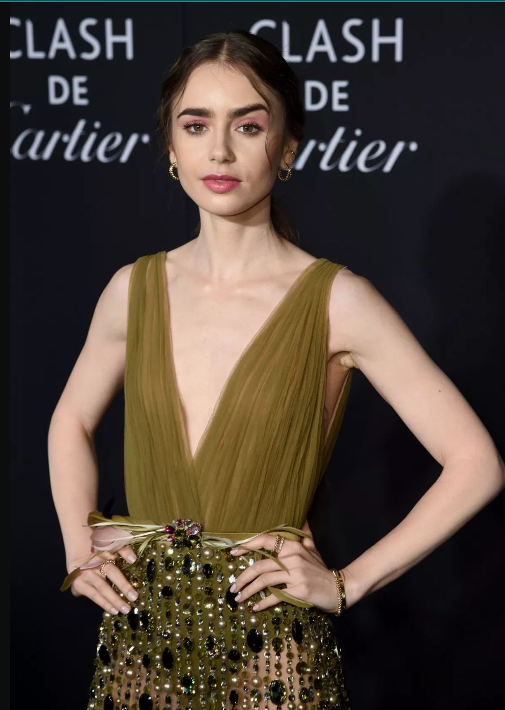 En 2019 Lily Collins no tenía poco busto. Fuente. Quien