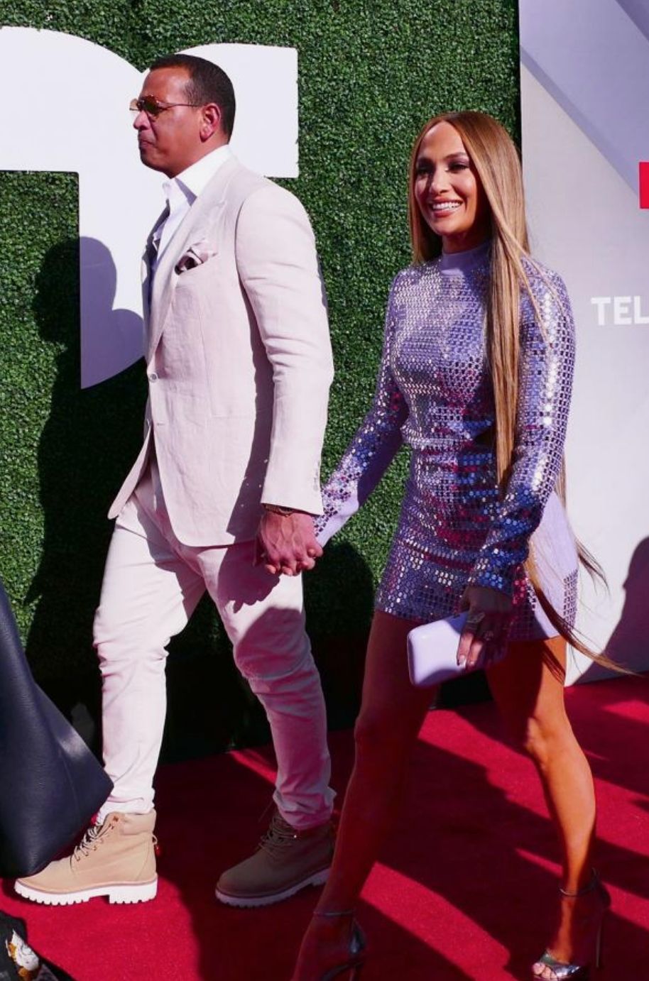Corría el año 2018 y la pareja en ese entonces muy enamorada, Jennifer Lopez y Alex Rodríguez, entraba de la mano por la alfombra roja a los premios Billboard. El color elegido por la "Diva del Bronx" fue el púrpura: ella lucía un vestido de lentejuelas tornasoladas en versión lo más corto posible que dejó a todos boquiabiertos.