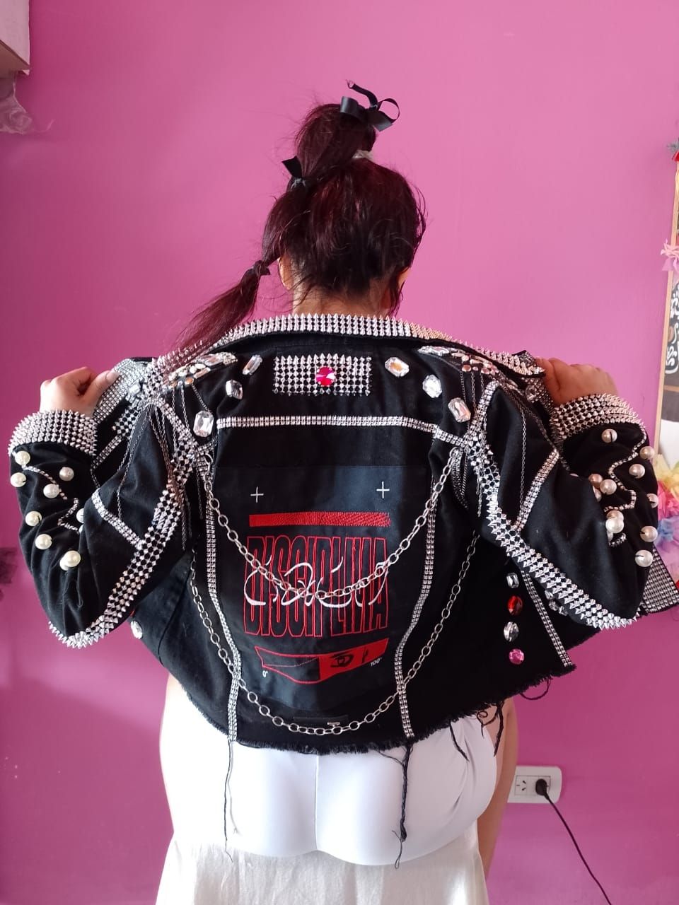 En cuanto al proceso de armado, contaron: “En la parte de atrás, Fran nos trajo un parche que tenía el logo de Disciplina Tour. Le agregamos unas cadenas y algunas piedritas para decorar, como nos pidió él. Queríamos que quedara súper brillante como lo es Lali Espósito y el resultado final superó nuestras expectativas. ¡Los 3 nos enamoramos de como quedó!”.