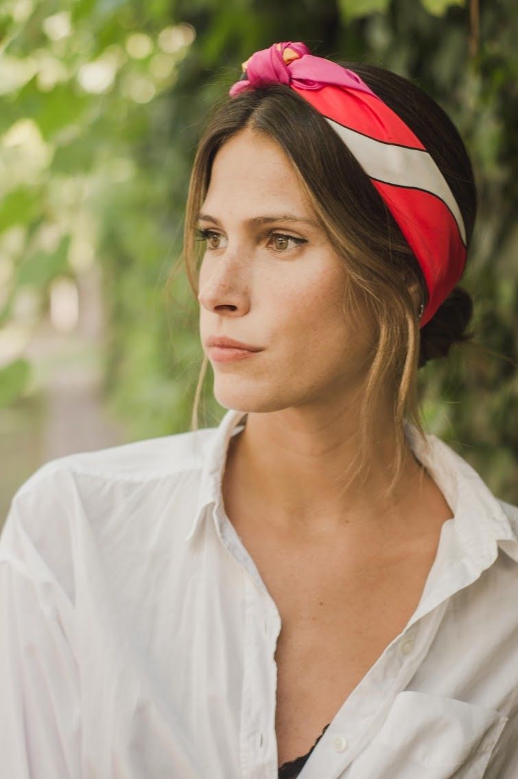Otra forma de llevar el pañuelo, es convirtiéndolo en una diadema.