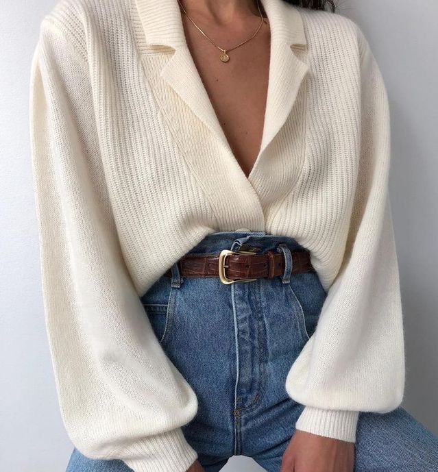 Si buscas algo más abrigado o no te sentís cómoda usándolo corto o abierto, otra opción es usar el cárdigan dentro de los jeans.