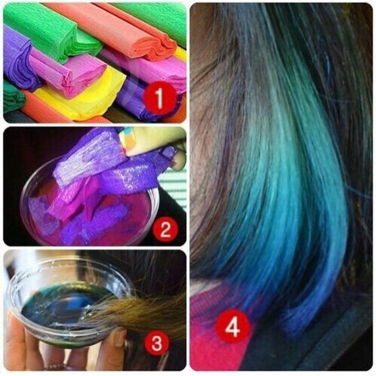 En la actualidad el pintarse el cabello de colores está a la moda. De hecho, en las tiendas encontrarás miles de colores y productos para lograrlo, pero los constantes cambios de looks a través de los químicos podrían dañar tu melena. Por eso, sería una buena opción teñir tu cabello con papel crepé. ¡Súper económico!