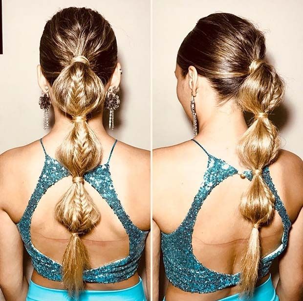 El bubble ponytail con trenzas o cola tipo burbuja, consiste en hacer una ponytail de altura medí con un cardado en la parte superior de la cabeza, dejando un mechón grueso. Con él harás una trenza llevándolo a la coleta, enroscando el largo en la liga, y al instante pondrás los elásticos a lo largo de la cola de cabello. Aparte de verte más delgada y alta estarás a la moda este 2021.