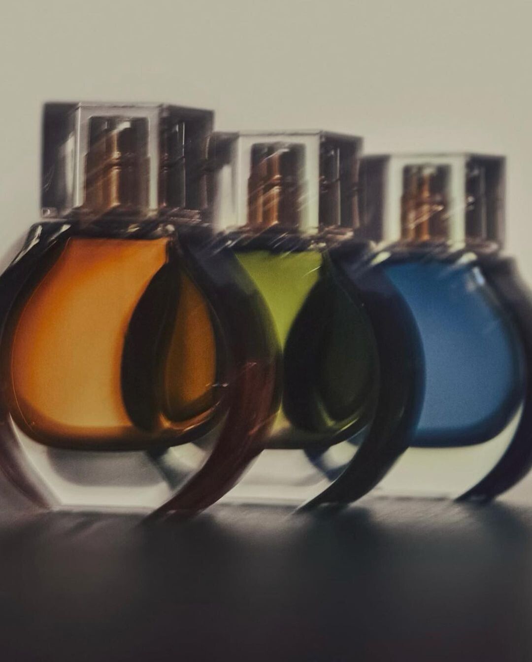 Para los envases de las fragancias, apostó por la simpleza en formas redondeadas. Son envases de 30 ml que se venderán a un precio de 40 dólares y vienen en tres colores: verde, azul y naranja. El verde se compone de flores de bergamota, fresia, rosa y jazmín; el azul, tiene notas cítricas, melocotón y flor de pera y se cierra con madera de ámbar, almizcle y vainilla y, por último, el de tonos naranja, recubre en su centro notas de Ylan Ylang, rosa blanca y jazmín Sambac.