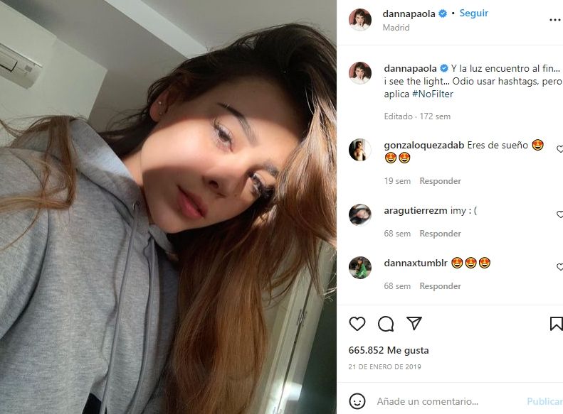 Dicha fotografía acumuló más de 660 mil 'me gusta' y más de 2 mil comentarios en los que la gran mayoría destacaron su rostro perfecto. Maquillada o no, queda muy claro que Danna Paola se cuida mucho, casi no tiene imperfecciones y es una mujer de una increíble belleza natural. Eso, es algo que no puede lograr ni el mejor de los maquillajes y ella cada tanto, se encarga de dejarlo claro en las fotografías ¡Bravo!