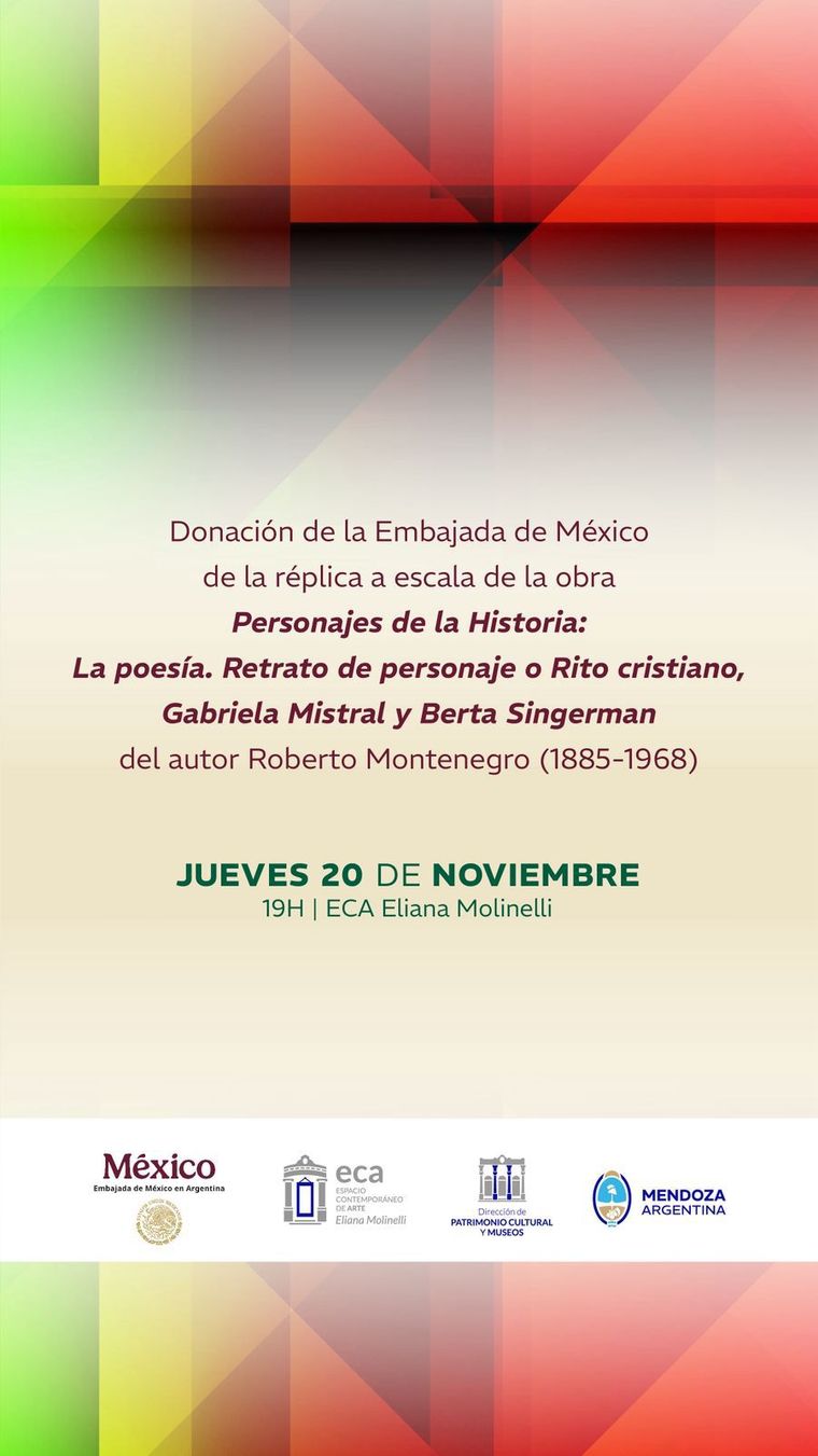 La Embajada de México en Argentina donó la réplica del mural “Personajes de la historia: La poesía”, del pintor jalisciense Roberto Montenegro, pionero del muralismo mexicano y uno de los maestros que inspiraron la búsqueda artística y simbólica de Diego Rivera.