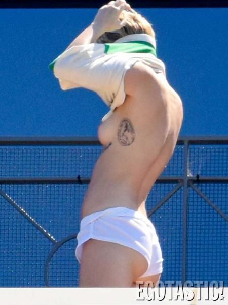 Se la vio haciendo topless en el balcón del hotel en Sidney, muy relajada y, al parecer, feliz.