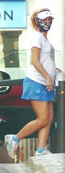 La colombiana prefiere ocultar su rostro y para eso se coloca un pañuelo que pueda confundir a la prensa local, aunque no le resultó.
