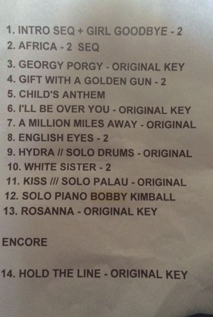 El público deliró con clásicos como “Africa”, “Rossana”, “Hold The Line”, “I’ll be Over You”, “Waiting for Your Love” y “I’ll Supply The Love” entre otros, y se fue feliz de poder disfrutar tan de cerca a una de las grandes estrellas de la canción mundial.