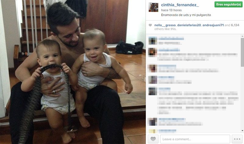 "Enamorada de uds. y mi pulgarcita", publicó ella en Instagram, plasmando a Matías con sus gemelas en brazos.