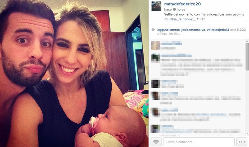 "Selfie del momento con mis amores. Las amo papirris @cinthia_fernandez_ #Fran", agregó él en su propia cuenta.