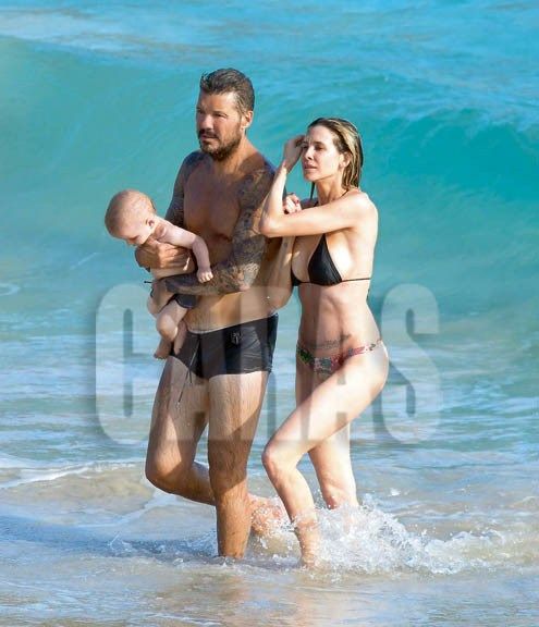 La nota muestra a la pareja en la semana de relax que pasaron en el paraíso francés del Caribe, disfrutando de su hijo, y de un verdadero paraíso.
