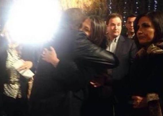 El abrazo fraterno entre Carlos Villagrán y Florinda Meza en el funeral de 'Chespirito'.(Captura de pantalla)