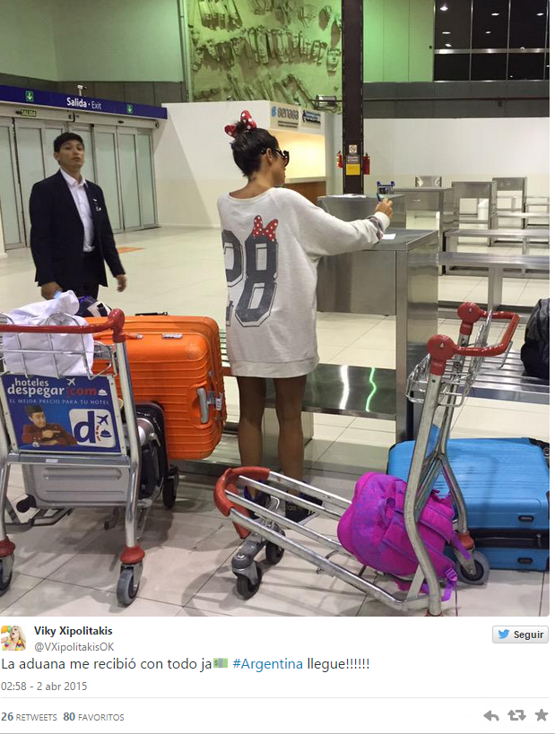 Vicky Xipolitakis, luego de su viaje a Miami donde realizó una producción hot en la vía pública para supuestamente para Playboy que repudió y aclaró que no tenía nada que ver, su falso arresto en el aeropuerto estadounidense vía Aruba, la mediática de regreso en el país provocó un incidente en el aeropuerto de Ezeiza.