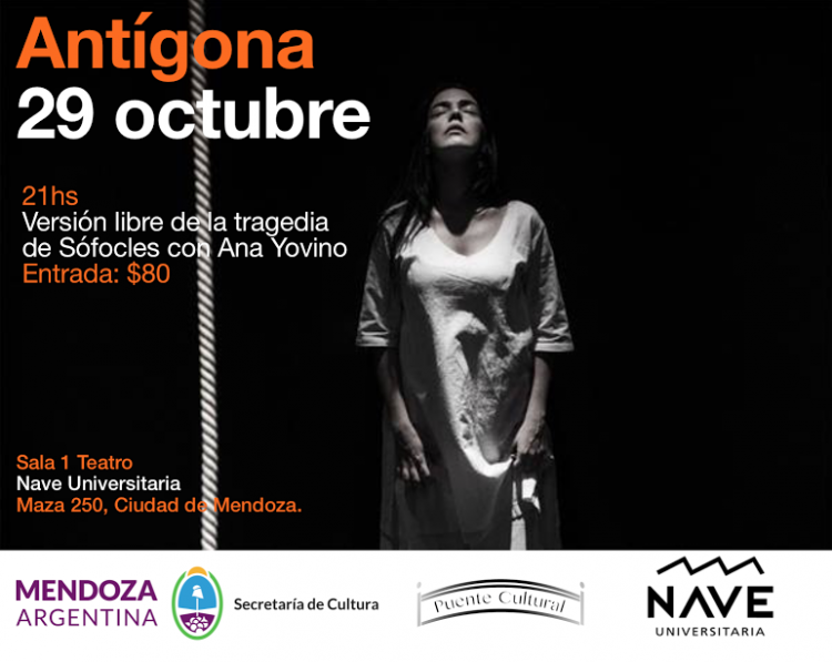 Este unipersonal oriundo de Buenos Aires, protagonizado por Ana Yovino se presentará el sábado 29 de octubre a las 21:00 en la Sala 1 de la Nave Universitaria. Además la actriz brindará un Seminario intensivo de Teatro Clásico gratuito.