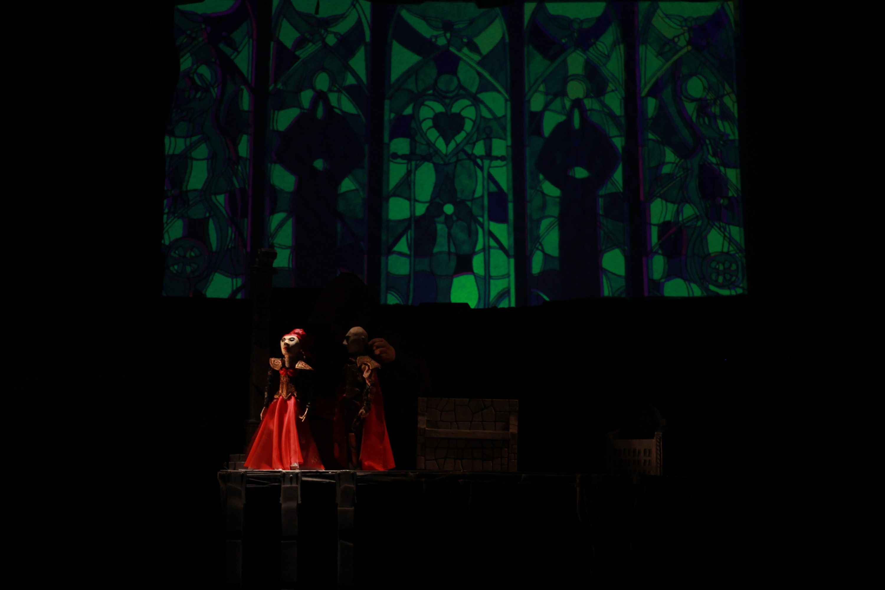 Las actrices Sandra Vigiani, Graciela Lopresti y Andrea Cardozo interpretan a las brujas de la historia, y aparecerán mediante proyección en pantalla. En tanto que Troncoso asume el rol del portero, en este caso devenido en una suerte de monje. Rodolfo Carmona estuvo a cargo de la escenografía y del diseño de los títeres, recordemos que Guillermo Troncoso ya estrenó algunos años la aclamada obra El elixir de amor, en la que también manipulaba títeres.