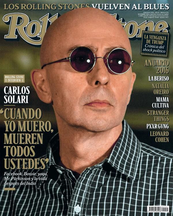 Esa vitalidad, ese pulso que lo mantiene activo, también se refleja en sus ganas de salir a tocar: "Cada directo es una prueba, por eso digo que no tengo un futuro muy largo. Al menos arriba del escenario. Porque para esta enfermedad todavía no hay cura, te mantienen, medianamente. Las últimas veces ya estaba enfermo, y cuando creía que no, ya estaba enfermo también. Y no tenía tratamiento y no estaba haciendo nada de lo que estoy haciendo. Tengo fe en este momento, pero no puedo hacer seis shows en el año". El Indio Solari en la tapa de diciembre de la revista RollingStone