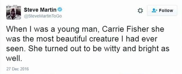 "En serio @SteveMartinToGo deja de ser tan idiota por pensar que Carrie Fisher era hermosa en el momento de su muerte", "Creo que ella aspiraba a algo más alto que simplemente ser bella", fueron algunos de los tuits.