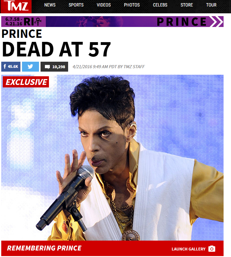 Además de la exclusiva del fallecimiento de Prince, ellos dieron la primicia de las muertes de Michael Jackson, Whitney Houston y su hija Bobby Brown, Sage Stallone o Paul Walker.