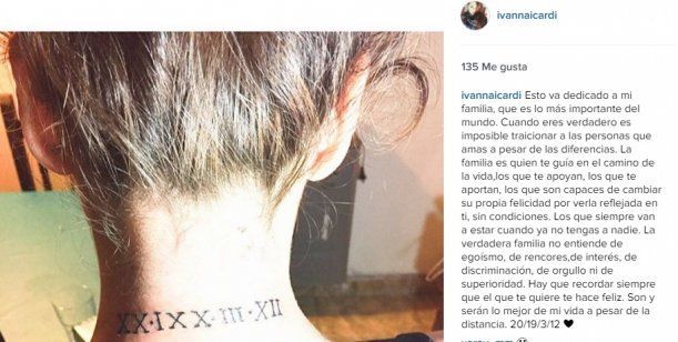 Ivana Icardi había compartido en Instagram su nuevo tatuaje dedicado a su familia, pero cuando le dijeron que tenía un error lo borró de inmediato.