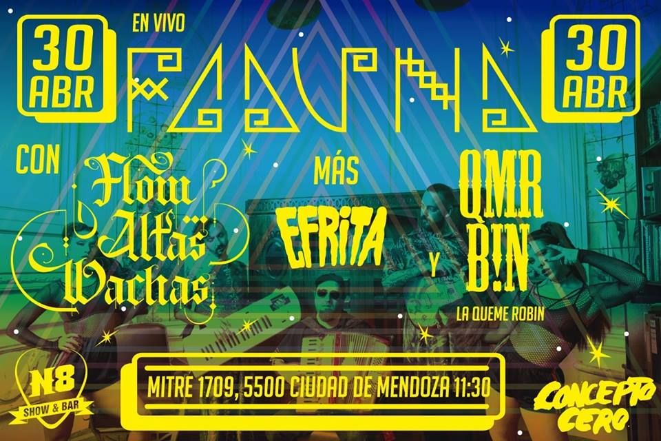Directo desde Bs.As y en el marco de su "Cuyo Tour", Faauna regresa a la provincia para darle inicio a su gira 2016. Acompañado por Lucas Villafañe (ex Karamelo Santo) y las F.L.O.W Altas Wachas, el grupo promete desatar una fiesta en la Ciudad. La sita imperdible será este sábado 30 de abril a las 23:30 en N8 Estudio.