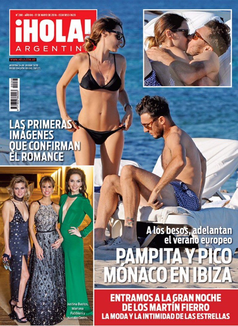 "Pampita y Pico Mónaco en Ibiza. A los besos, adelantan el verano europeo", tituló la revista Hola en su nueva portada de esta semana con las primeras imágenes de la pareja besándose.