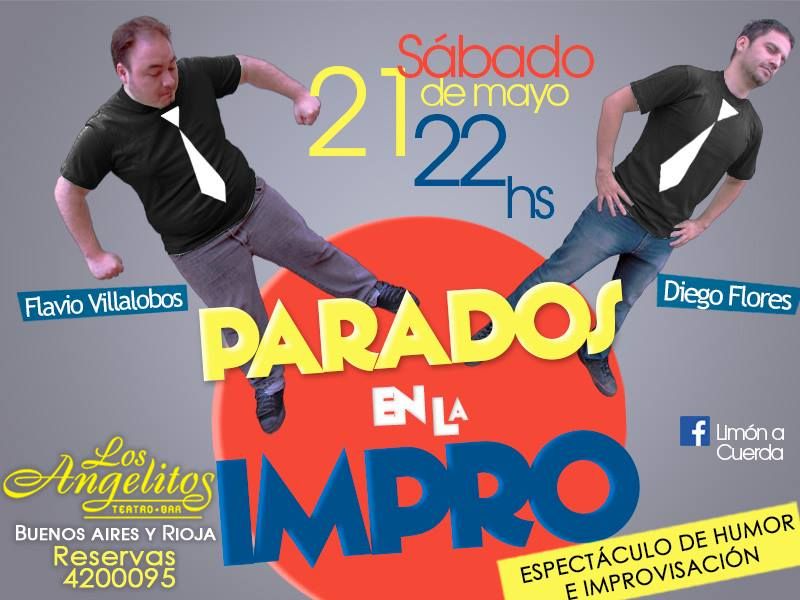 Parados en la impro. Stand up / Humor / Improvisación. Con Diego Flores y Flavio Villalobos. A las 22 en el teatro bar Los Angelitos (Rioja y Buenos Aires).