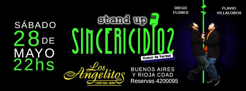 Sinceridios. Humor / Stand up. A las 22 en el Teatro Bar Los Angelitos (Rioja y Buenos Aires). Con Diego Flores y Flavio Pichón Villalobos. Entrada: $70.